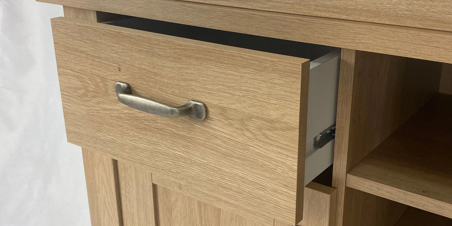 - Classic oak furniture design with shaker style doors and traditional handles.