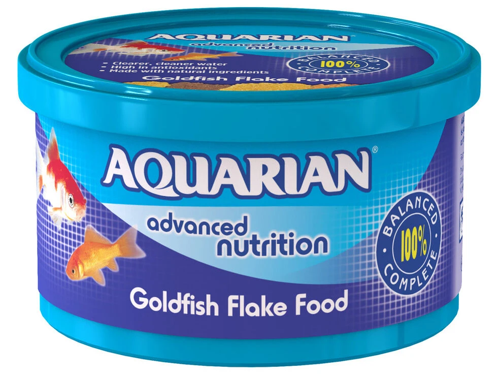 Goldfish love the natural taste. Brings out the natural colours of your fish. No artificial colours Your goldfish has a well developed sense of taste and will reject food which they don’t like. Apart from this uneaten food ending up polluting the water in the tank, when your goldfish are not eating their food, they are not getting the nourishment they need to stay healthy. Studies over many years confirm that goldfish really do enjoy the natural taste of Aquarian – put a few flakes in the water and watch how quickly and eagerly your goldfish eat it. The special natural recipe of Aquarian is also very easy for your fish to digest which means that more of the food you feed ends up as nourishment for your goldfish and less as pollution. Aquarian Goldfish Food helps your fish stay healthy and active and the water in your aquarium stays clear and clean. Aquarian Goldfish Food comprises 4 individual flakes each with specific nutritional benefits: Brown: with kelp Yellow: High carbohydrates flake with natural protein Red: Rich in fish protein Orange: With extra vitamins and natural antioxidants