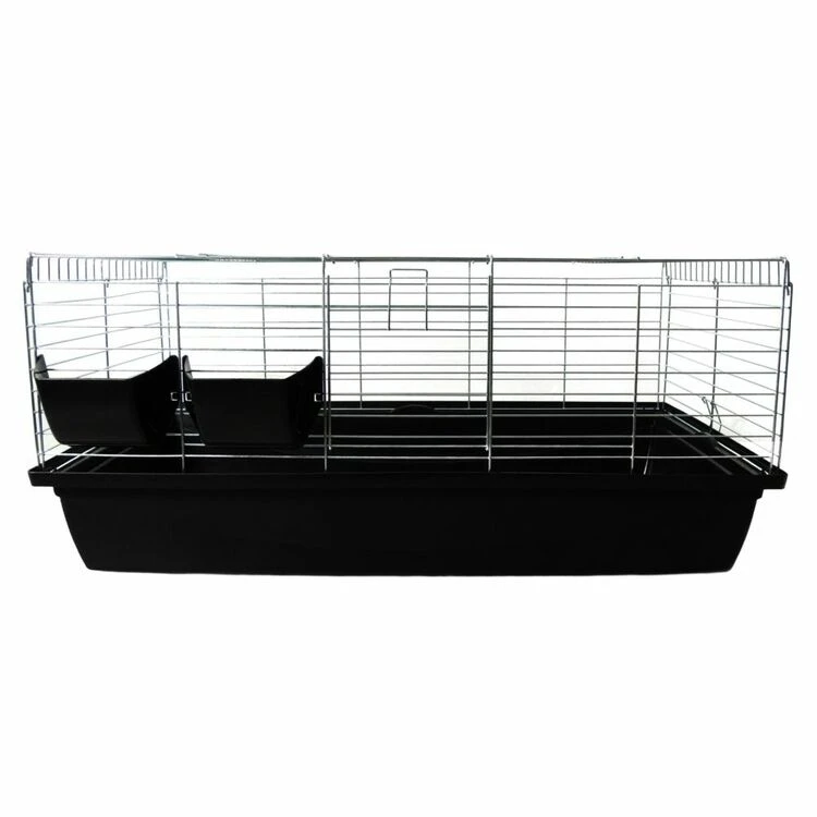 Premium Rabbit 100 Indoor Guinea Pig Cage Hutch Black with large top door and drop down opening front door.