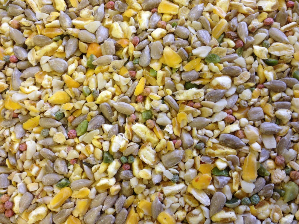 New non germinating wild bird mixture with added vitamin and mineral pellets suitable for feeding from the ground, in a feeder or on a bird table