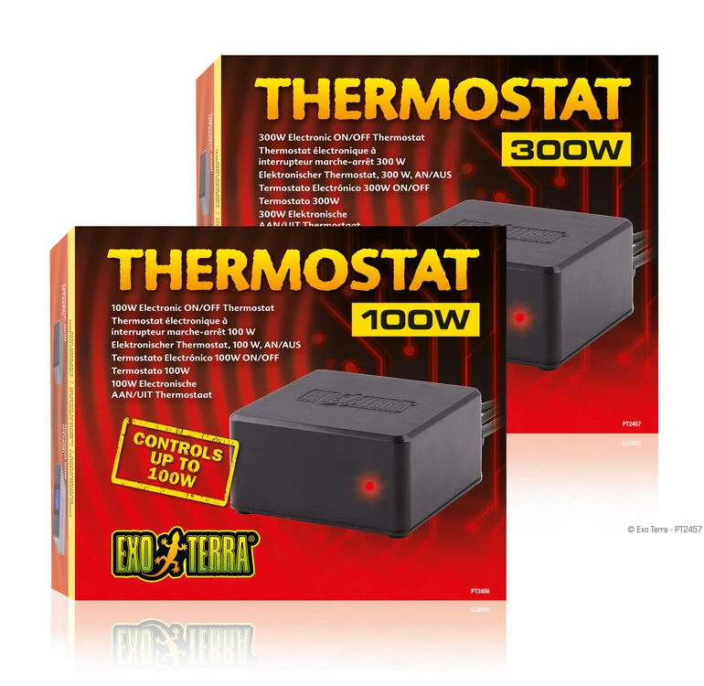 Reptiles rely on heat from an external source to ensure they keep at their optimal body temperature, the Exo Terra Electronic On/Off Thermostat will provide you with a controlled heated environment that will allow you to maintain the correct temperature, similar to what you would find in the desert. It features an electronic switch where the temperature can be set at the desired number. It also has a red LED light that will indicate when the heating device is on.