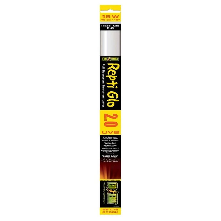 The Exo Terra Repti Glo 2.0 is a general light source with a high visual light output and a very high colour rendering index (CRI), but a lower UVB radiation.