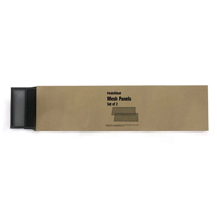 The HabiStat Mesh Panels allow for added air flow and exchange throughout the Terrarium and provide greater control over humidity. Having a fully mesh enclosure can prove hard to maintain heat and humidity for certain species. A full glass enclosure, while great for temperatures, can be more difficult for humidity control, again, depending on the species you keep and their requirements. The mesh panels allow for this improved and important air-flow which in-turn allows for better humidity and even temperatures control.