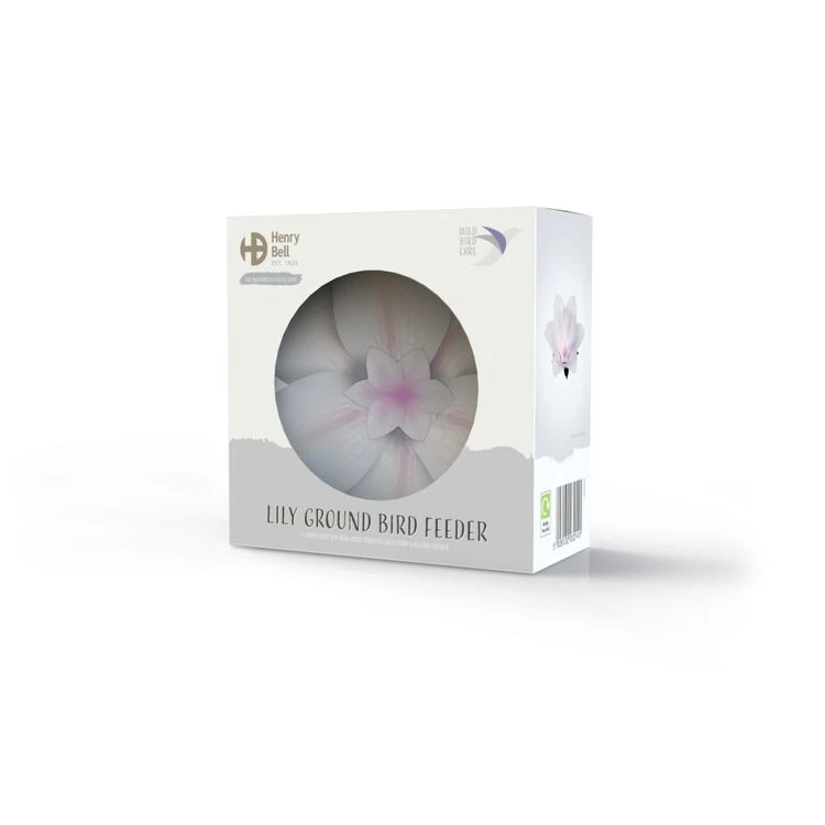 A beautifully crafted & hand painted garden ground bird feeder. The delicate white and pink shades of the Lily inspired feeder will add colour to any garden. 20.5cm Length x 20.5cm Width x 29cm Height. A drainage hole is included in the design to assist in keeping the feed as fresh as possible. Suitable for all seed blends, black sunflower, suet treats and mealworms. Place the stake feeder either in the lawn or borders and fill with a small amount of feed, topping up regularly to keep it fresh. By feeding regularly, more birds are likely to visit your garden all year round for you to enjoy. Requires minimal assembly
