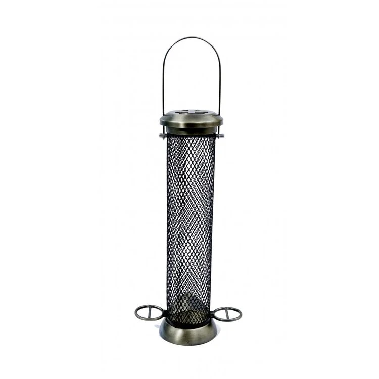 The Heritage Sunflower Hearts Feeder is a strong & stylish heavy duty 32cm feeder which holds 490g of our Henry Bell Sunflower Hearts. With an easy to open, robust lid and two bird friendly perches the feeder is made in aluminium which is light, strong, corrosion resistant and easy to maintain and beautifully finished in antique gold. The feeder incorporates bronzed crafted diamond wire mesh designed to enable the wild birds feeding experience.