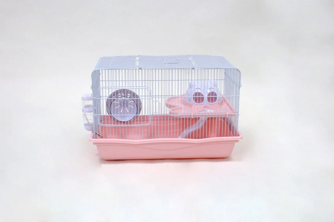 The Harry cage is suitable for Dwarf Hamsters, Russian Hamsters, Mice, Gerbils and other similar sized rodents, it comes with 1 food bowl, 1 water bottlw, 1 exercise wheel, 1 house, 1 platform and 1 ladder