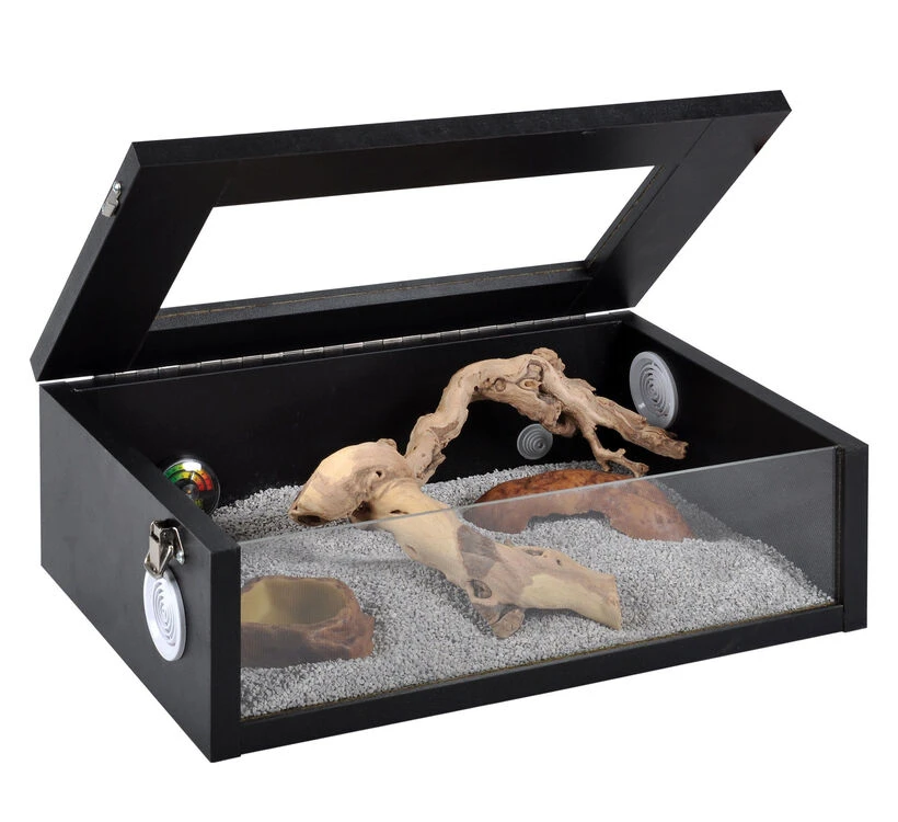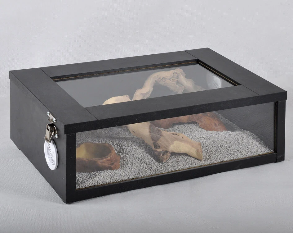 18″ Black Monkfield Vivarium- Favoured by new and experienced reptile keeps alike, the Monkfield Terranium has an undeniably attractive wooden finish and is designed to be as comfortable as possible for its inhabitant, whilst also being convenient for their owner to use. With large glass panels to ensure that your pet can always be observed, these reptile vivariums allow plenty of natural light in and their hinged tops have secure clip-lock on either side to prevent possible escapes.