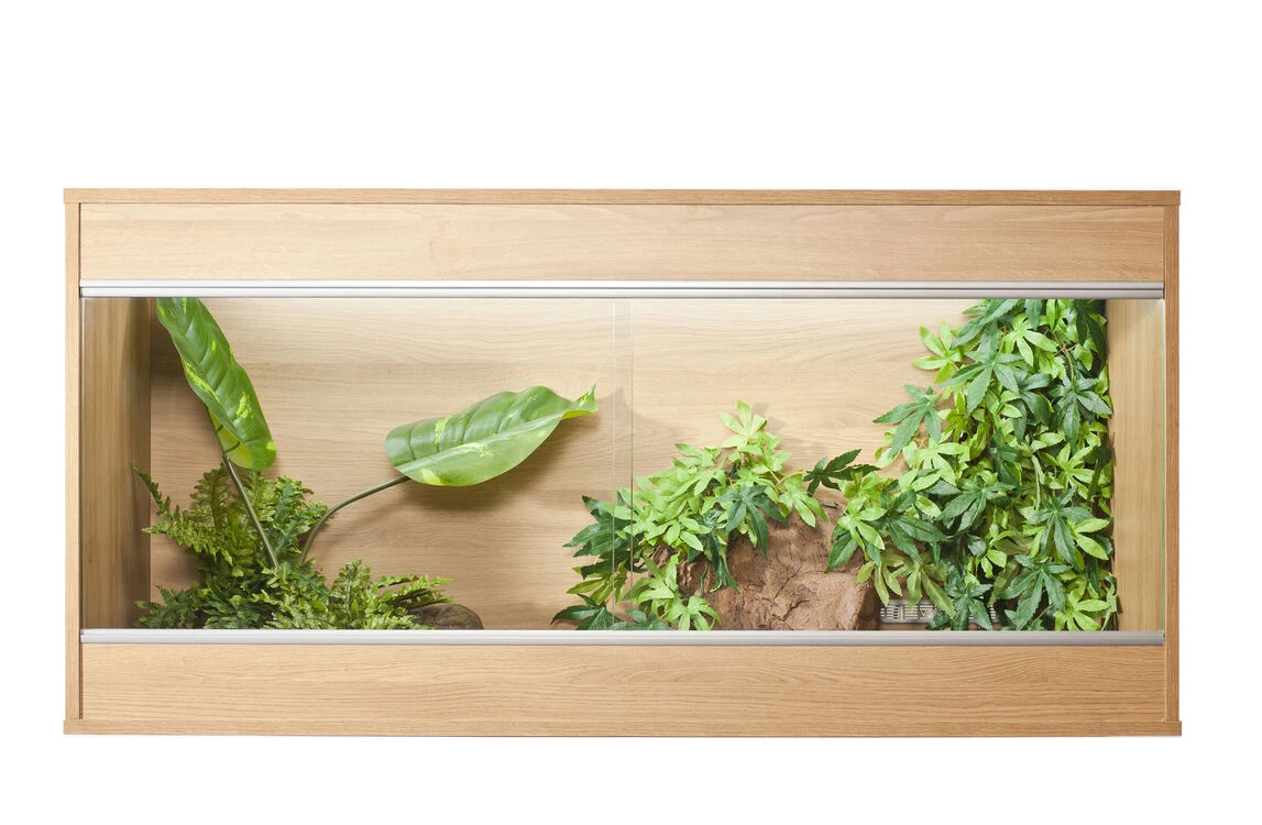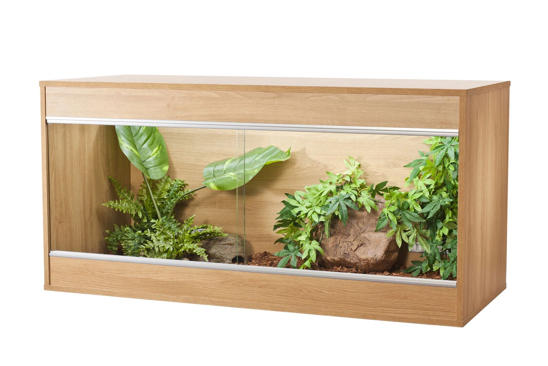Repti-Home Maxi vivariums offer great value living space for your reptile. These quality constructed vivariums feature toughened glass and non peeling laminate to ensure not only will your reptile be happy and healthy in his new home but you can be sure of a high specification, long lasting vivarium that will sit effortlessly in any home environment.