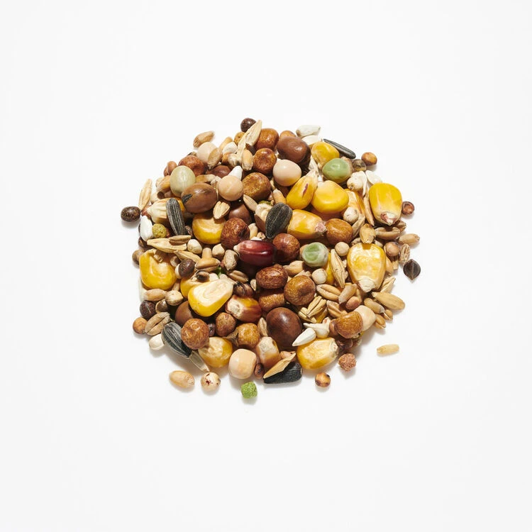 Ingredients: maize, wheat, barley, peas, dari, beans, and seed